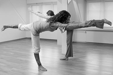 Wir mobilisieren die Gelenke, öffnen den Brustkorb, dehnen den Nacken und die Wirbelsäule und arbeiten mit den typischen Krias, speziellen Hand und Fussübungen.